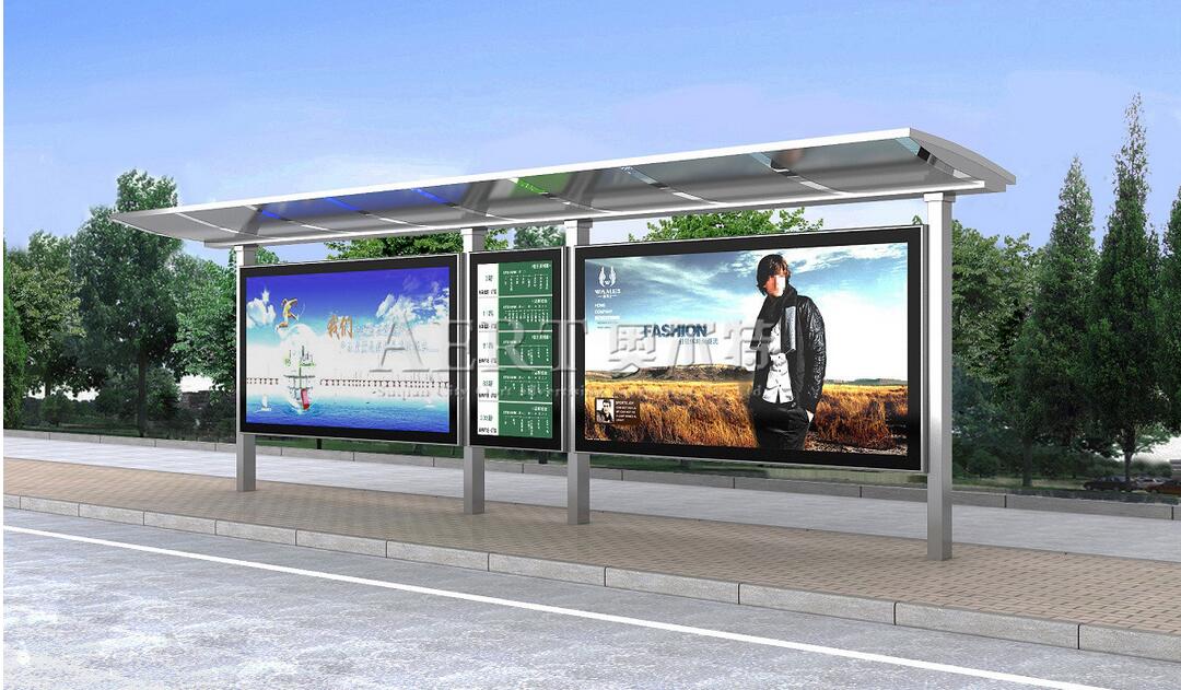 2、整體結(jié)構(gòu)的設(shè)計(jì)也比較雅致、獨(dú)特,它的站牌款式與滾動(dòng)廣告燈箱的款式也與候車亭是配套的,這樣的候車亭很能吸引人們的目光,而且廣告畫面也比較大的又是滾動(dòng)廣告燈箱。