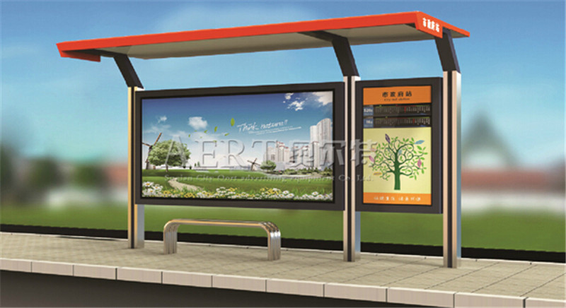 不銹鋼材質(zhì)候車亭燈箱的使用率次之。其價格略高、穩(wěn)定性更好、耐腐蝕、著色成本高,較適合一、二線城市使用。